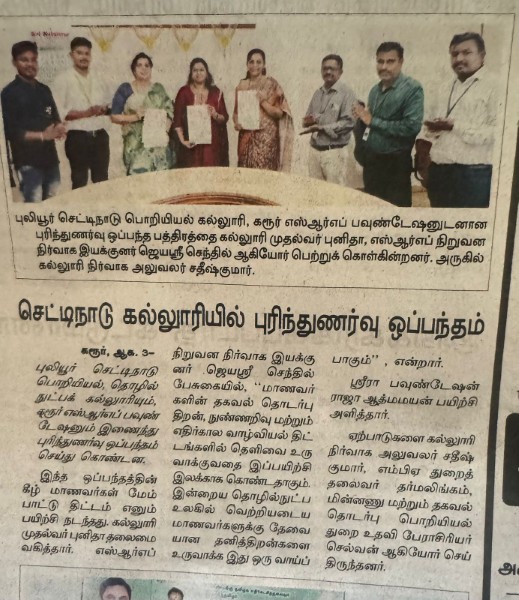 This initiative begins with an MoU signed with Arasu College of Arts and Science for Women and Chettinad College of Engineering and Technology.